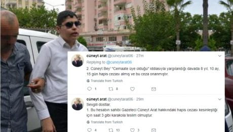 Visually impaired Turkish journalist Cüneyt Arat was sent to prison late on Monday due to his alleged links to the Gülen movement. When Arat learned that a prison sentence approved by an upper court on Sunday, he turned himself in to the police later the same day.